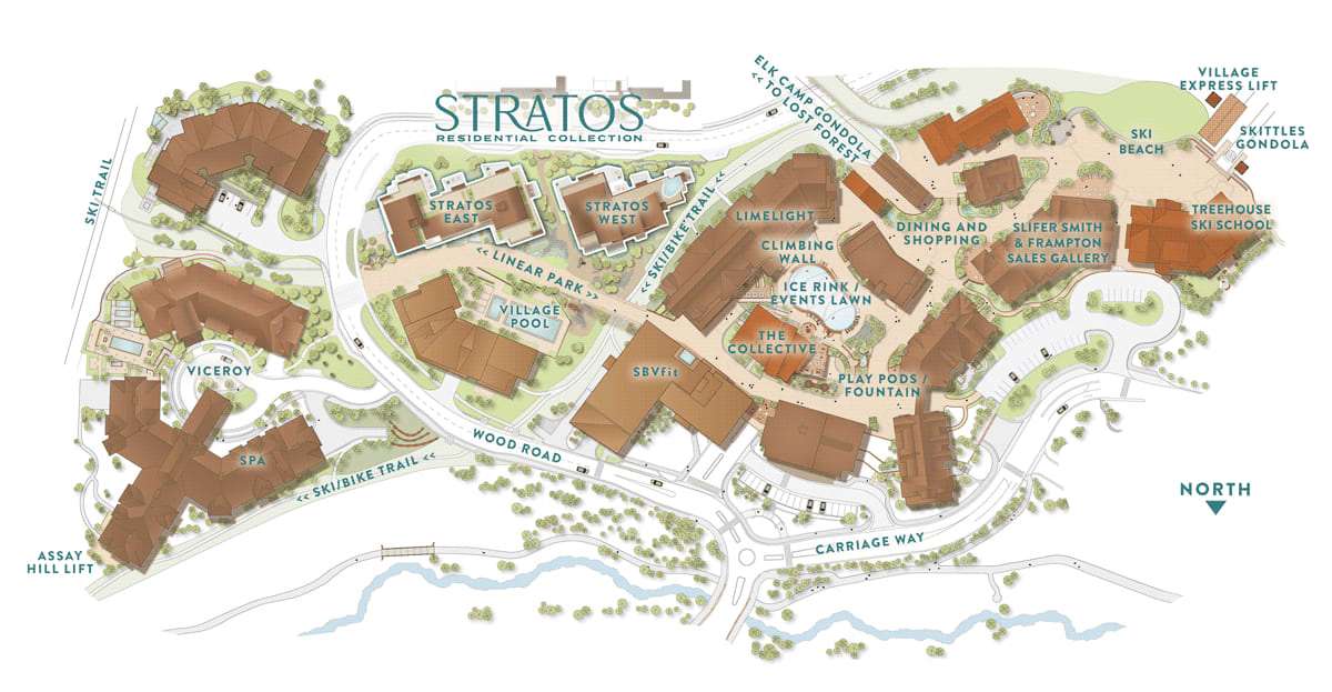 The Stratos Residential Collection of 89 homes offers a wide range of sizes and floor plans, showcasing many of our favorite Base Village home designs. Offering a collection of 2-, 3-, and 4-bedroom Residences; six 4- and 5-bedroom bi-level townhomes called Cloudstones; and six 4-, 5-, and 6-bedroom penthouse residences, called Sky Cabins. Here, there is a home for every mountain lifestyle. Stratos is located in the heart of Base Village. Step directly onto freshly groomed corduroy or onto miles of hiking and biking trails.