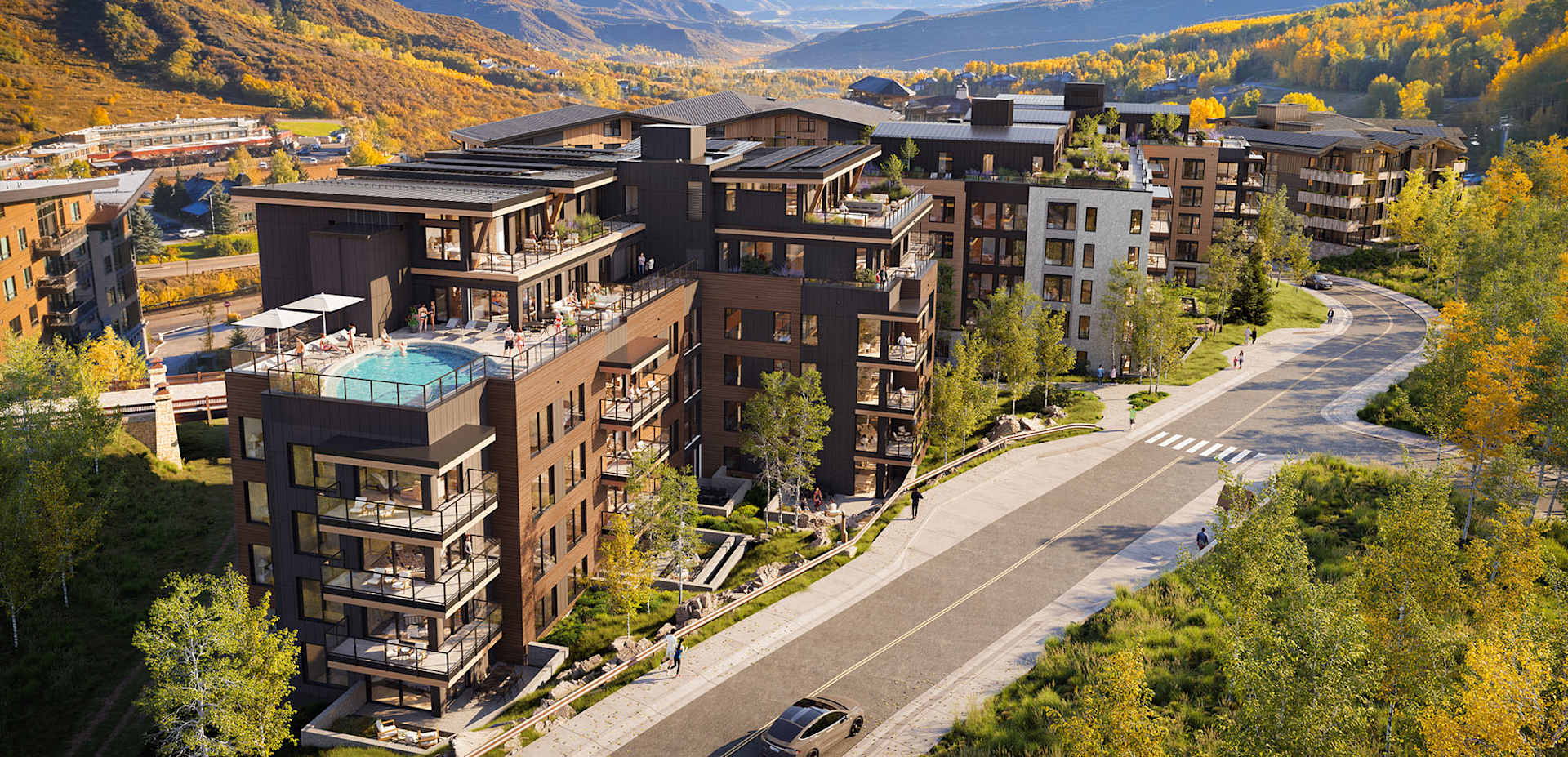 Inspired by classic brownstone architecture, these two-story homes step directly out onto the new Linear Park, for instant access to the vibrant amenities of Base Village and the Snowmass Resort. Townhome-style living features distinctive 4 and 5 bedroom floor plans with a double-height great room and private, two-car garage just steps from your door.
